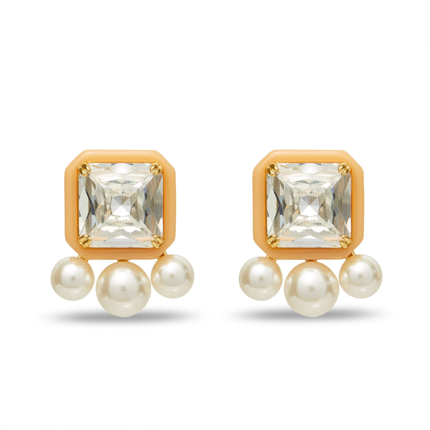 Our button earrings, now with color blocking resin. Perfect for every day.
