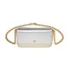 ∙ Hidden 14k gold plated chain shoulder strap, measures 45″
