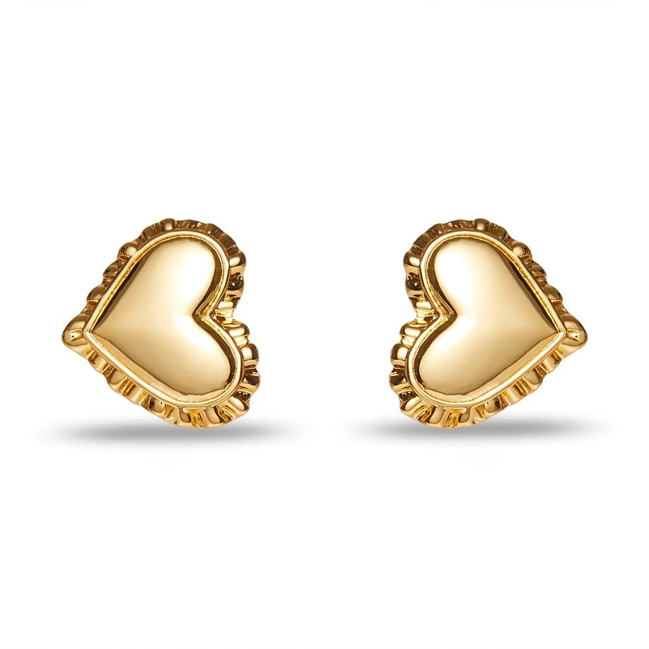 ∙ 14k gold plated hearts featuring ruffled trim detailing