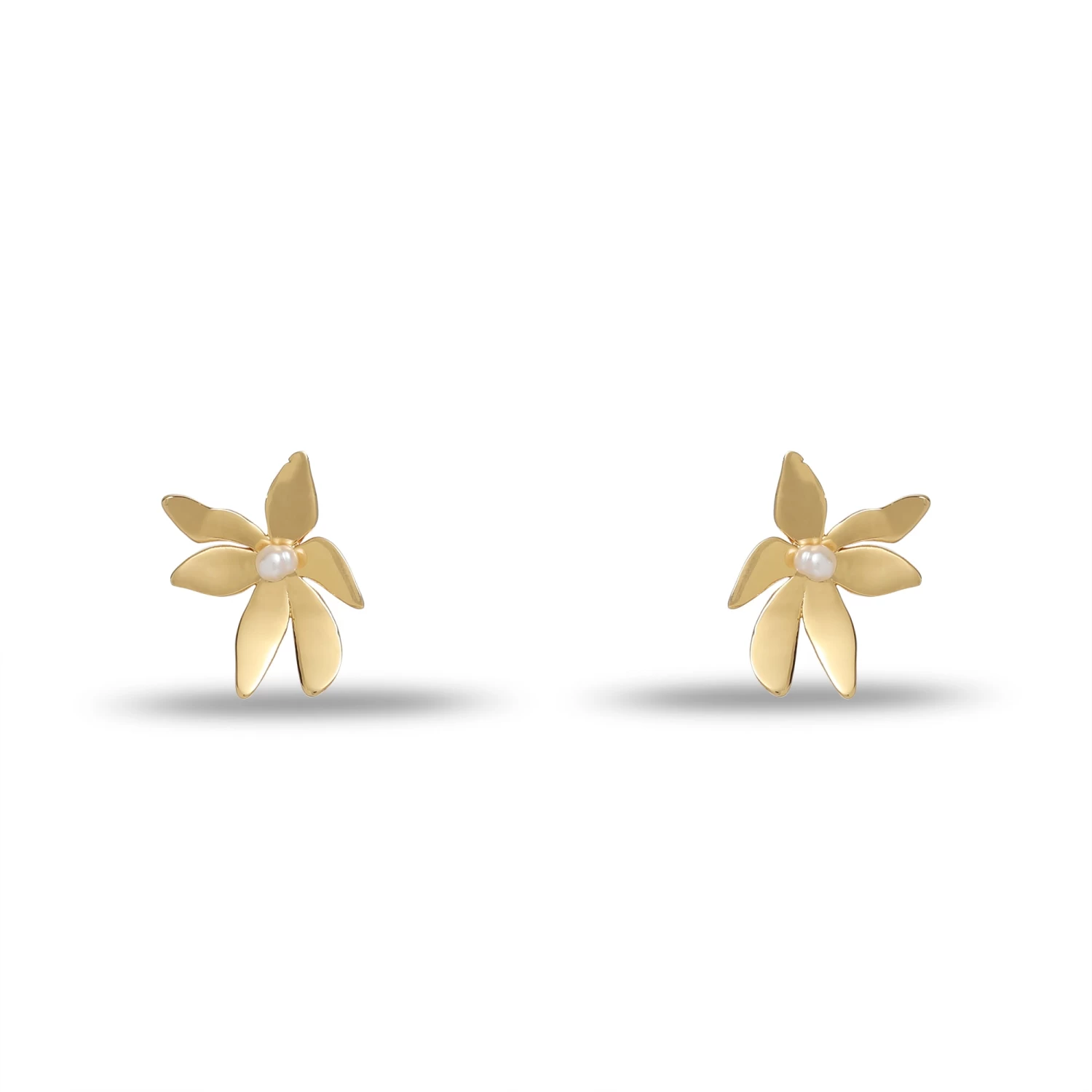 ∙ 14k gold plated petals featuring hand set faux pearl centers