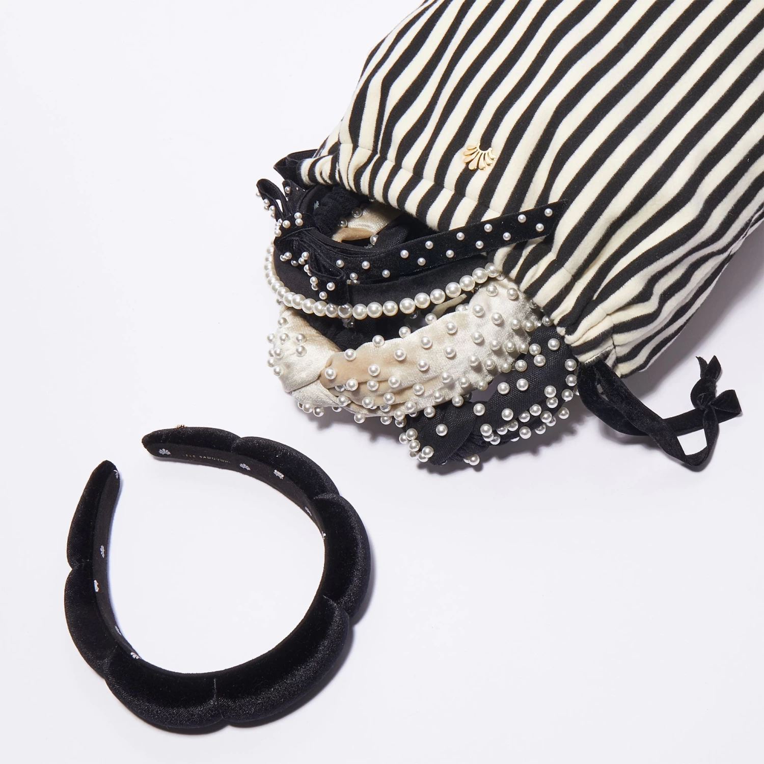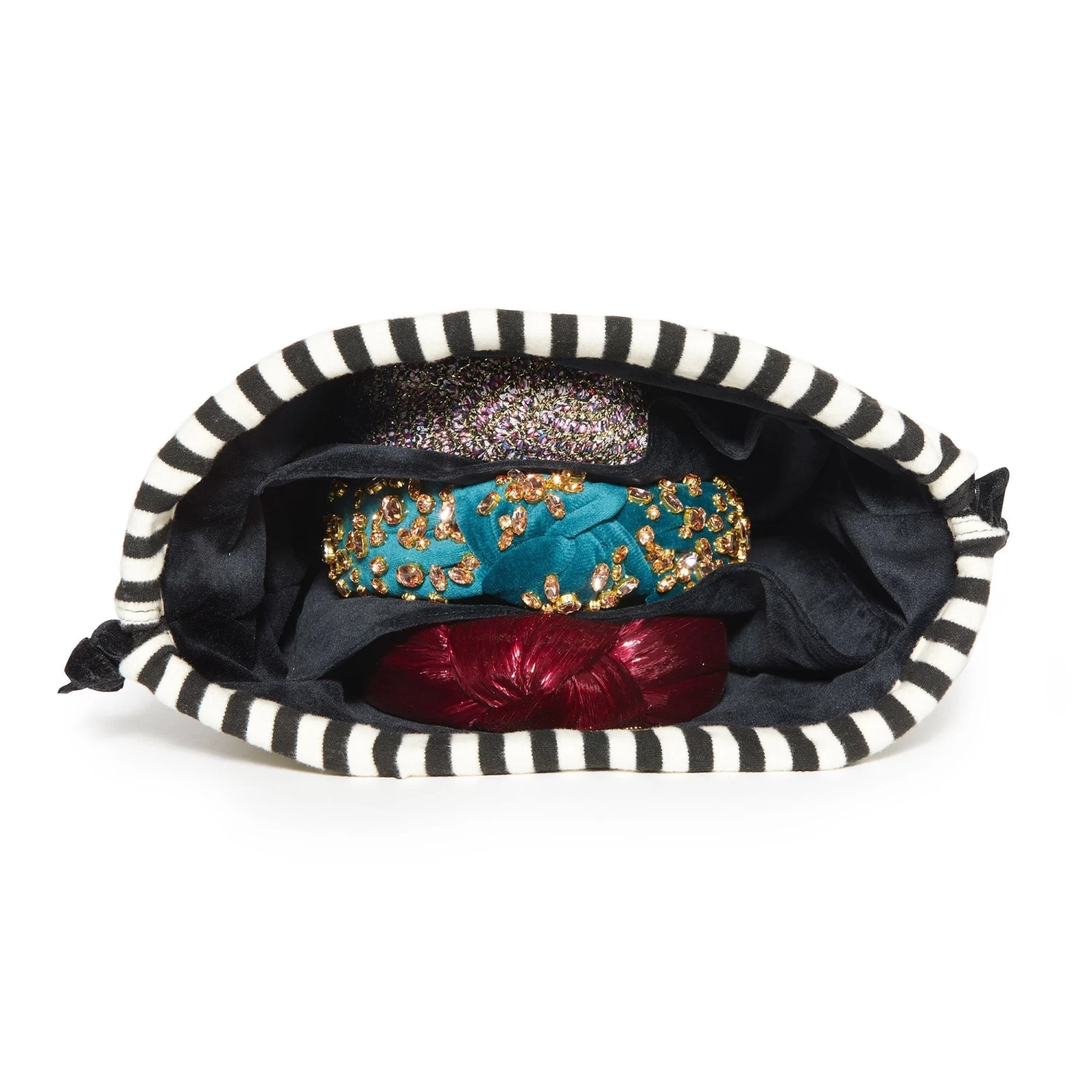Perfect for traveling. This pouch holds your jewels, sunglasses, and headbands so you’re always ready to go.