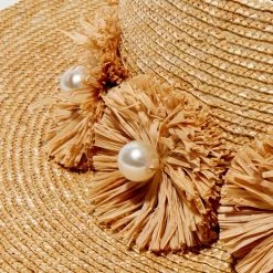 ∙ Hand-embellished with raffia confetti pom poms featuring faux pearl centers