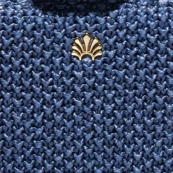 ∙ Navy genuine leather side and base panels and navy woven raffia front and back panels
