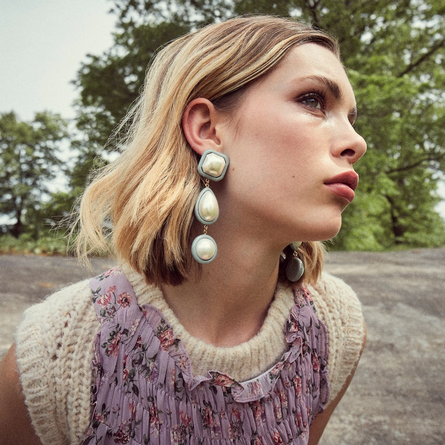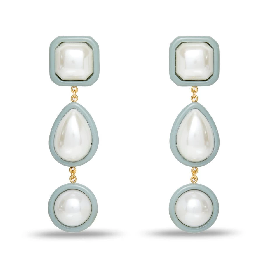 ∙ Three multi-shape faux pearls bezel set in dusty blue resin