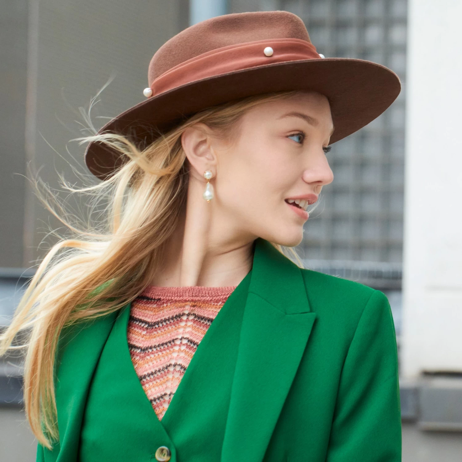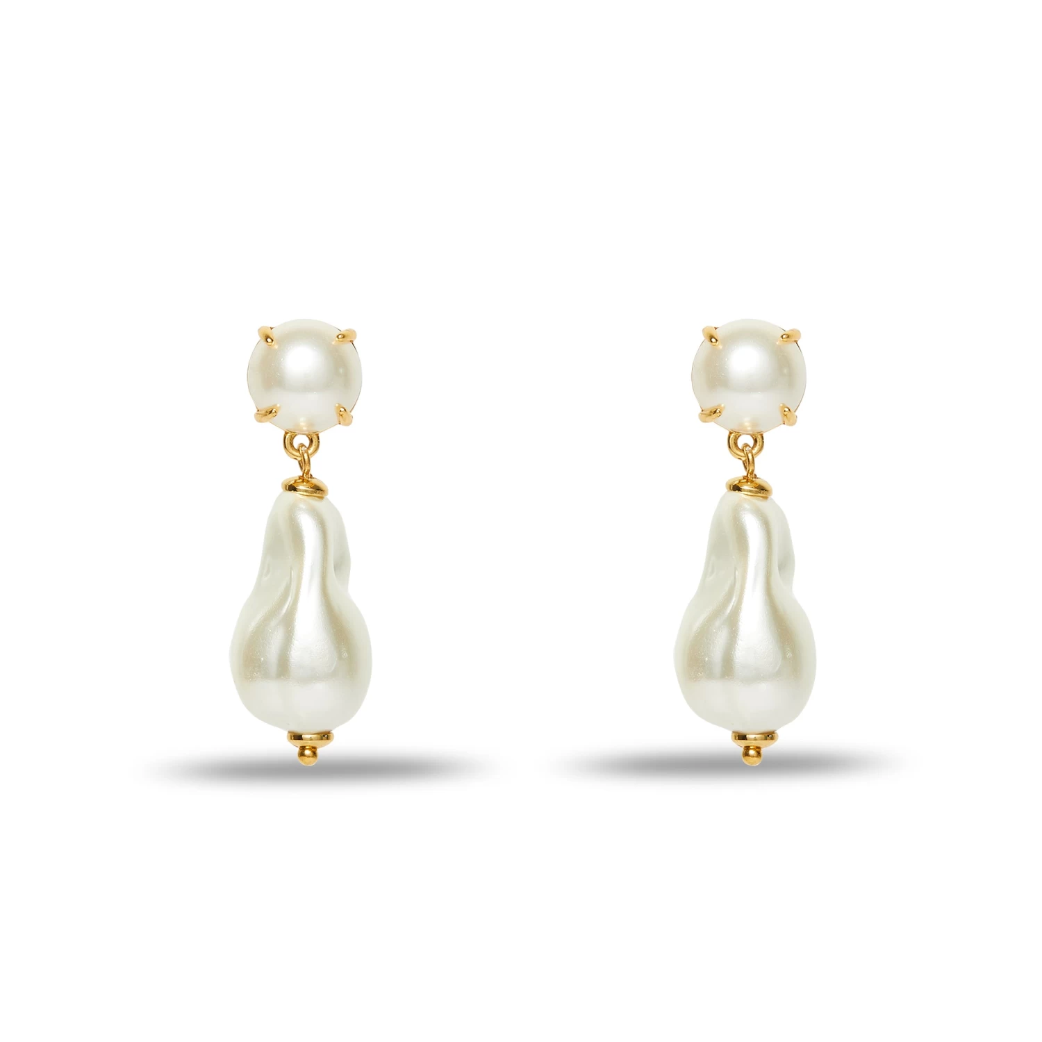 ∙ Faux pearl post featuring dangling faux baroque pearl