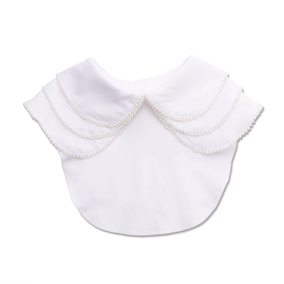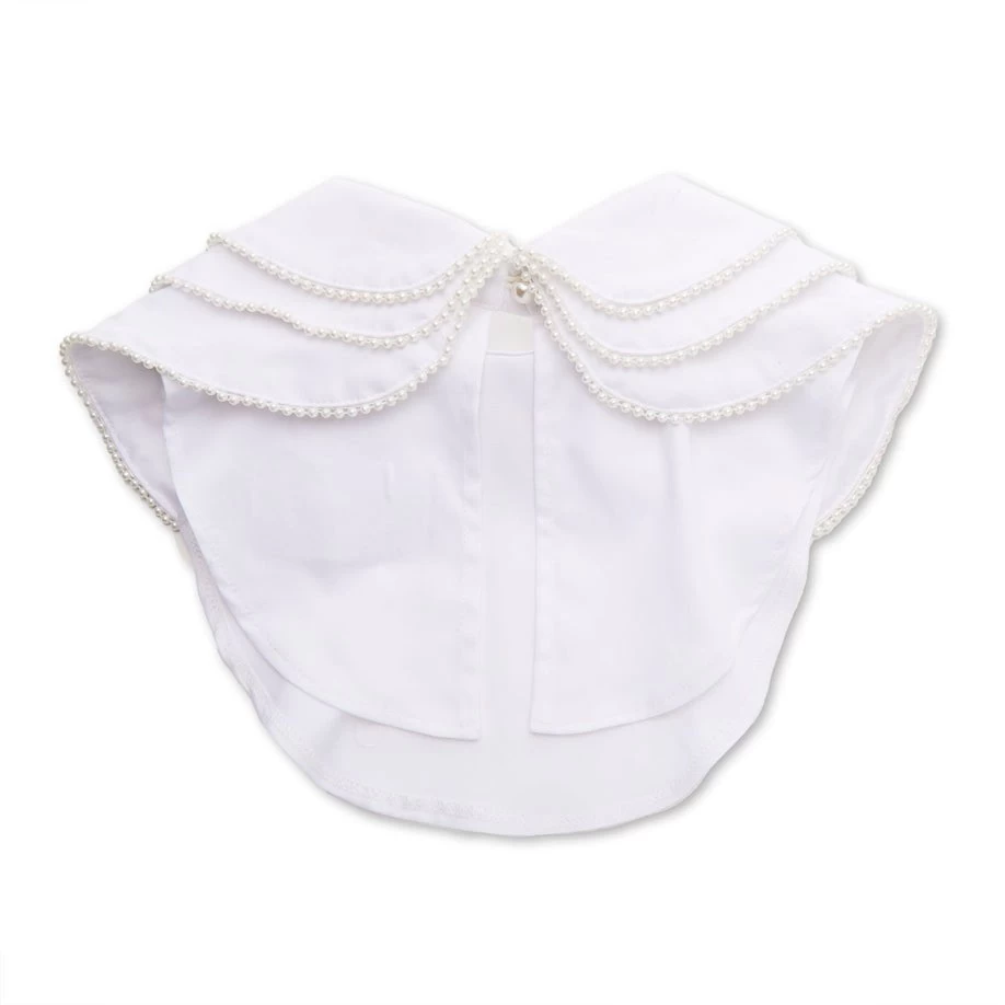 ∙ White 100% cotton featuring 3 layered collars with faux pearl trims
